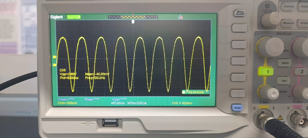 - Set the input signal to a sinusoidal wave at 1 kHz with an amplitude of 0.2 V.