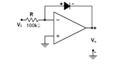 - Connect the log amplifier (Fig 5). Set supply to ±12 V. Set Vin = 1 V and record the output voltage across the diode.