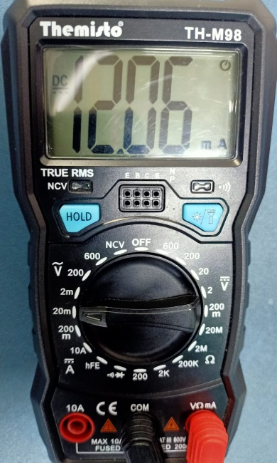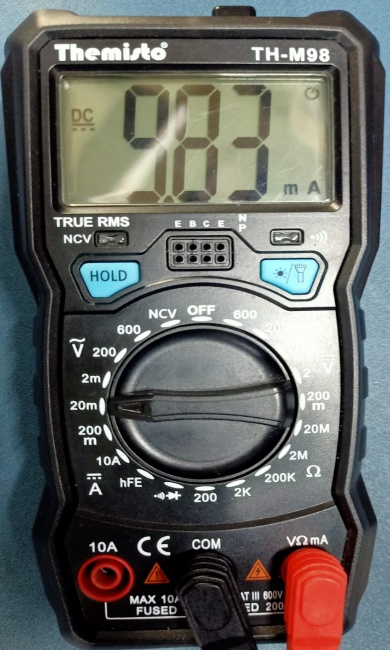Digital multimeter reading showing Iout (current through the output branch) for Case 1.