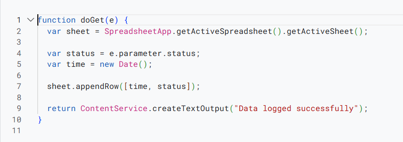 - Create a Google Sheet and open the Apps Script editor from the Extensions menu.
