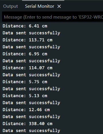 - Upload the program to the ESP32 and open the Serial Monitor to observe real-time distance values by placing objects at different positions in front of the ultrasonic sensor.