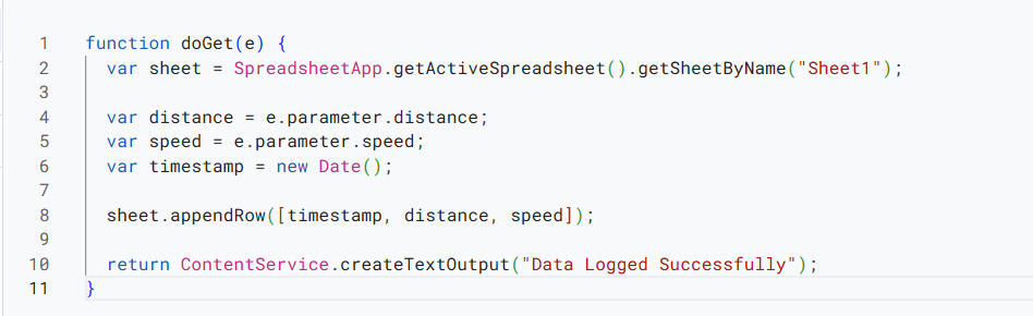 - Each speed measurement was logged in Google Sheets along with the corresponding timestamp for further analysis.