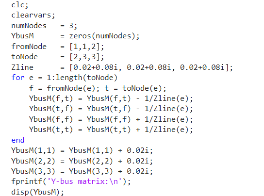 MATLAB was used to implement the FDLF method for both problems. The code forms the Ybus matrix, constructs the decoupled B′ and B″ matrices, performs iterative updates of voltage angles and magnitudes, and checks convergence at each iteration.