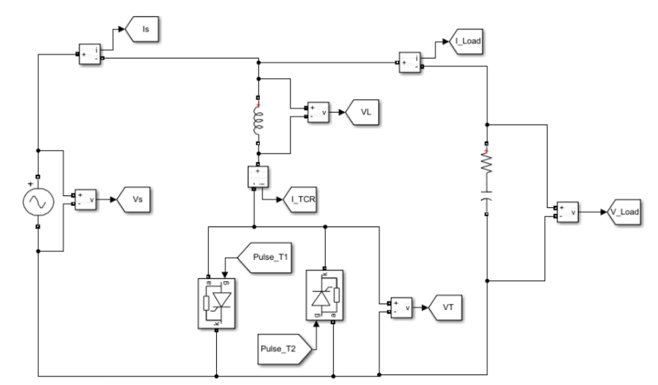 Figure 1: Simulink model of the Thyristor-Controlled Reactor (TCR) setup