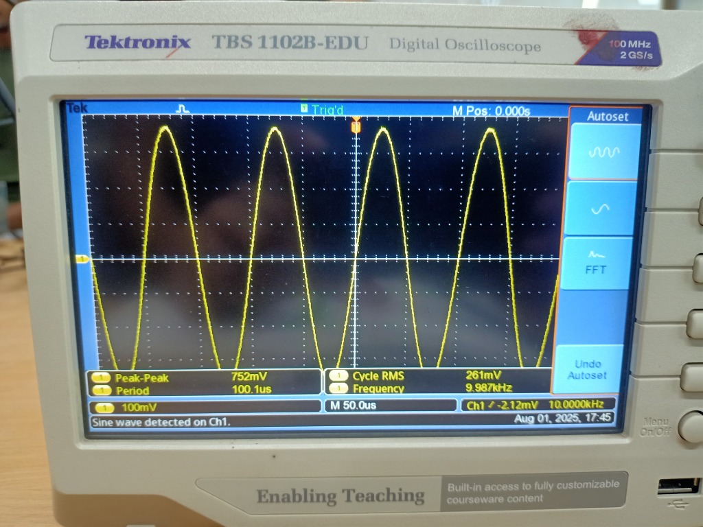 - Apply a 1 Vpp AC sinusoidal input from the function generator.