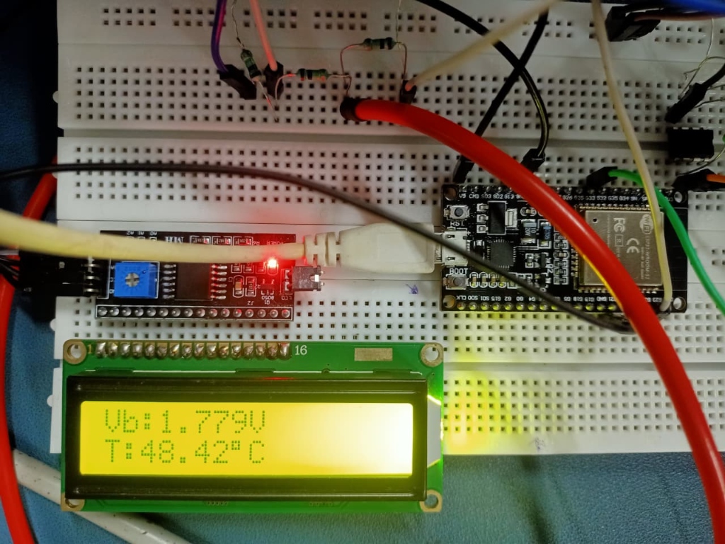 - The linear calibration equation T(°C) = −48.68 · Vbridge + 134.9 was successfully programmed into the ESP32. The negative slope reflects the NTC thermistor's characteristic of decreasing resistance (and thus decreasing bridge voltage) with increasing temperature.